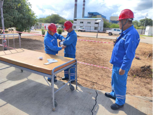 2026年3月20日一场旨在提升全体员工应急反应能力的安全演练在博茨瓦纳项目部成功举行。本次演练聚焦于火灾场景下的伤员包扎救治及初期火灾扑灭两项关键技能,全体参演人员沉着应对,展现了扎实的专业素养和高效的协作能力。